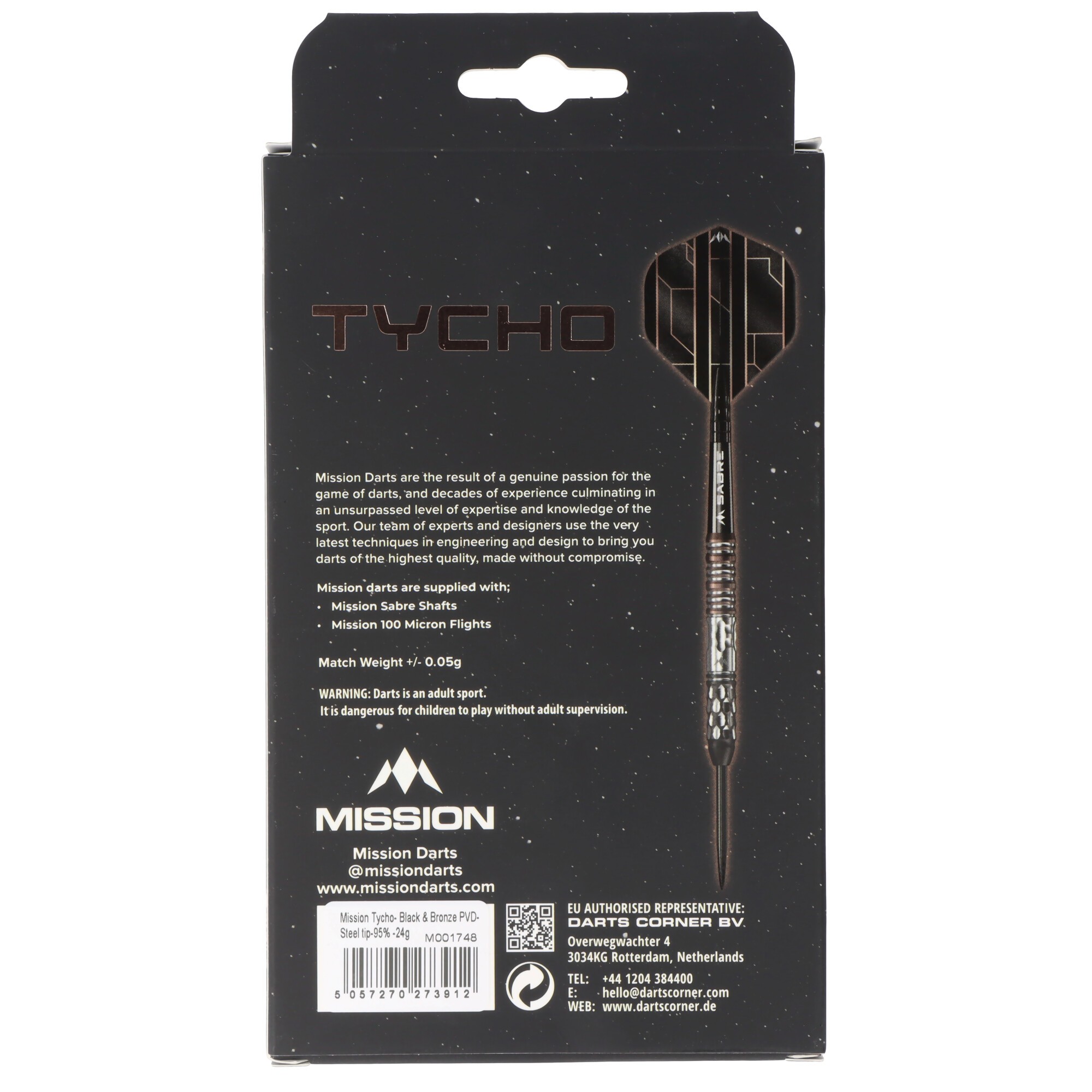 Steeldart Tycho schwarz, silber, bronze, 95%